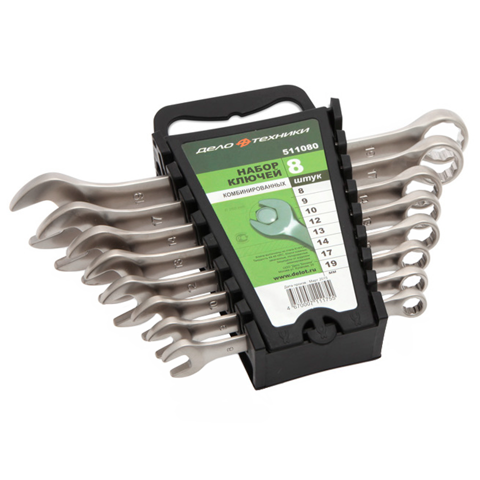 Набор состоит из 8 предметов: 8, 9, 10, 12, 13, 14, 17, 19 мм