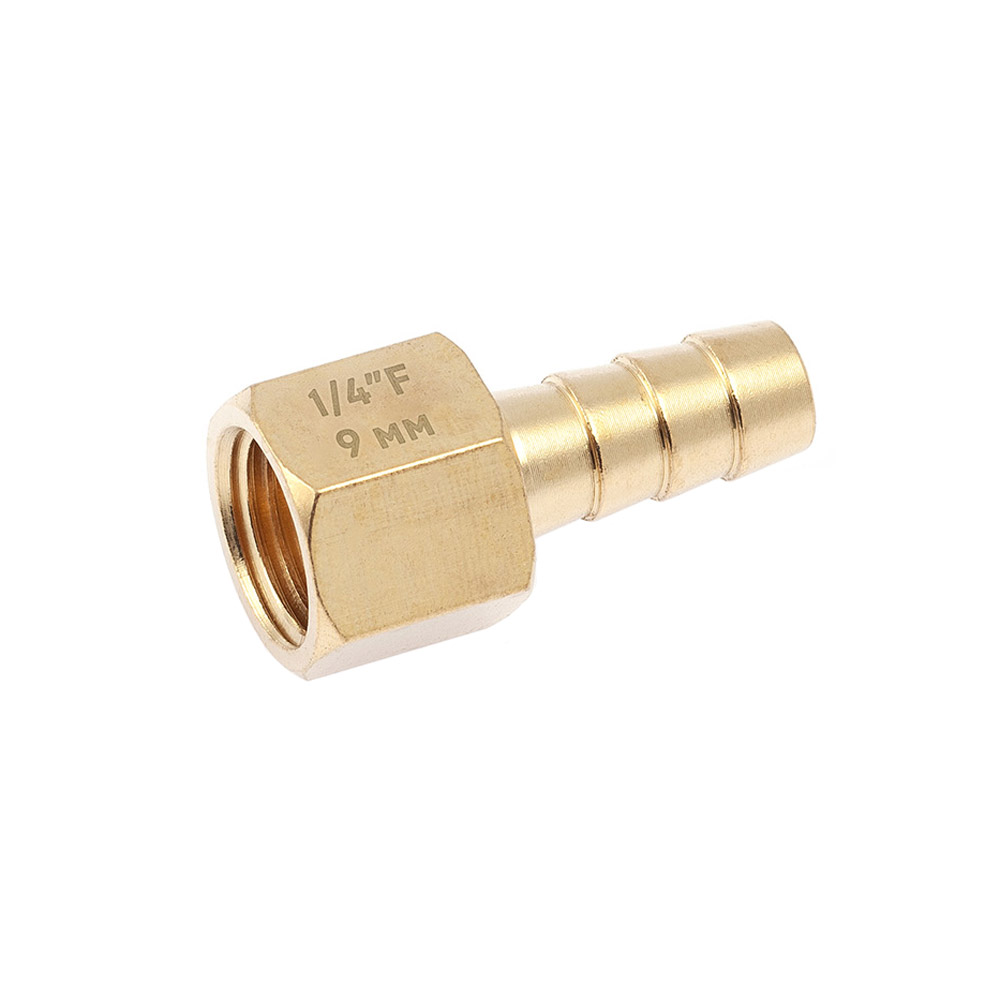 Штуцер соединительный 949021 резьбовой латунный "мама" 1/4"(F) × ёлочка 9мм/200/800